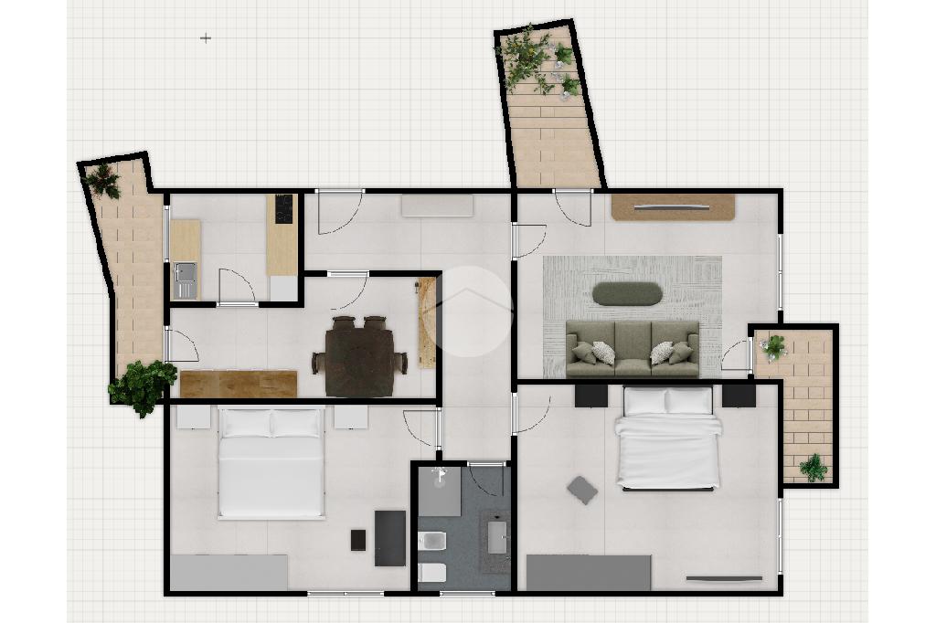 La zona notte offre due grandi camere matrimoniali, ideali per chi desidera spazio e tranquillità, e un bagno finestrato recentemente ristrutturato, con una moderna doccia e finiture curate nei dettagli.