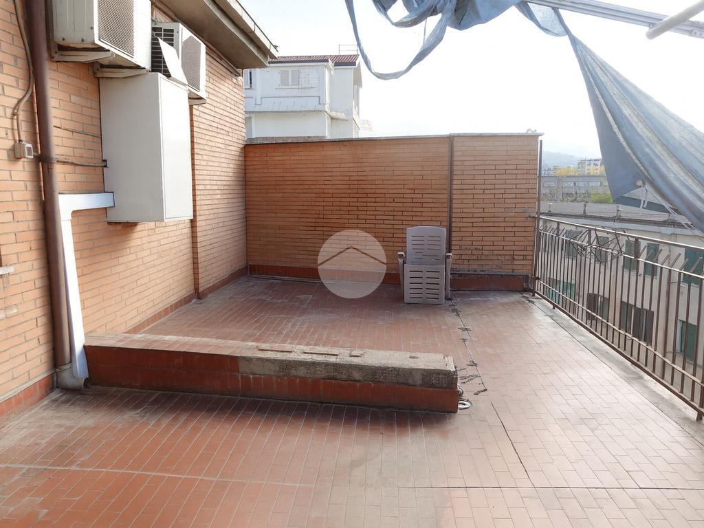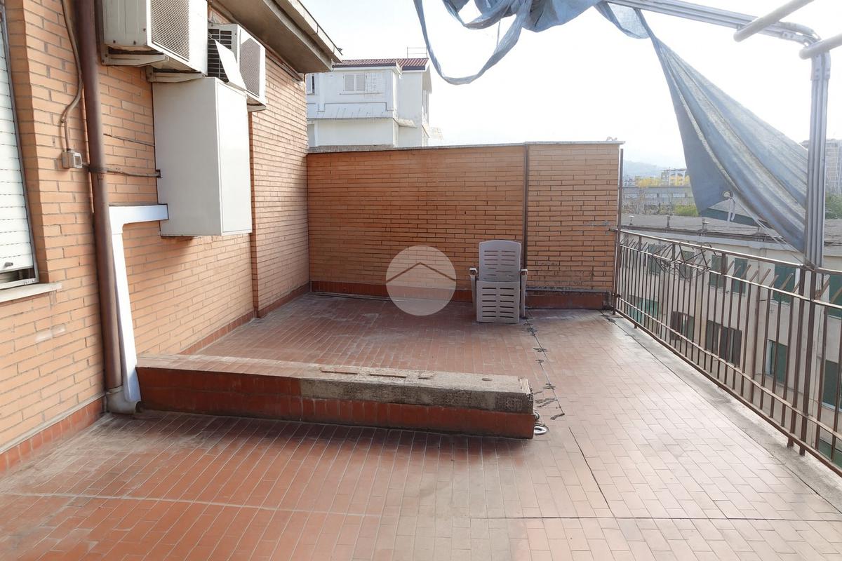 L'appartamento vanta spazi generosi, con un soggiorno luminoso che da accesso ad un terrazzo molto grande di 40 mq,, una cucina separata e abitabile dotata di camino, una camera con un balcone, due matrimoniali e un bagno finestrato. Inoltre, include un comodo posto auto con cancello elettrico. La sua posizione ottima in una zona semicentrale.