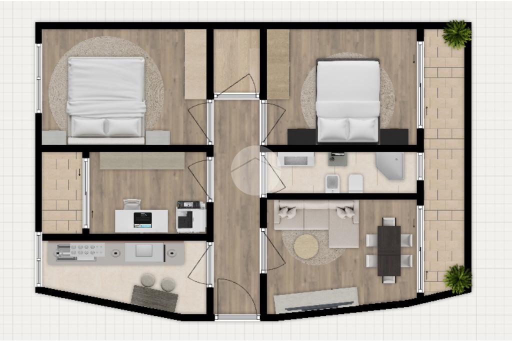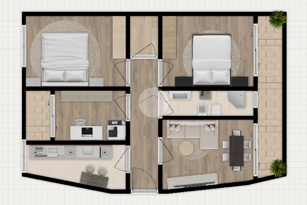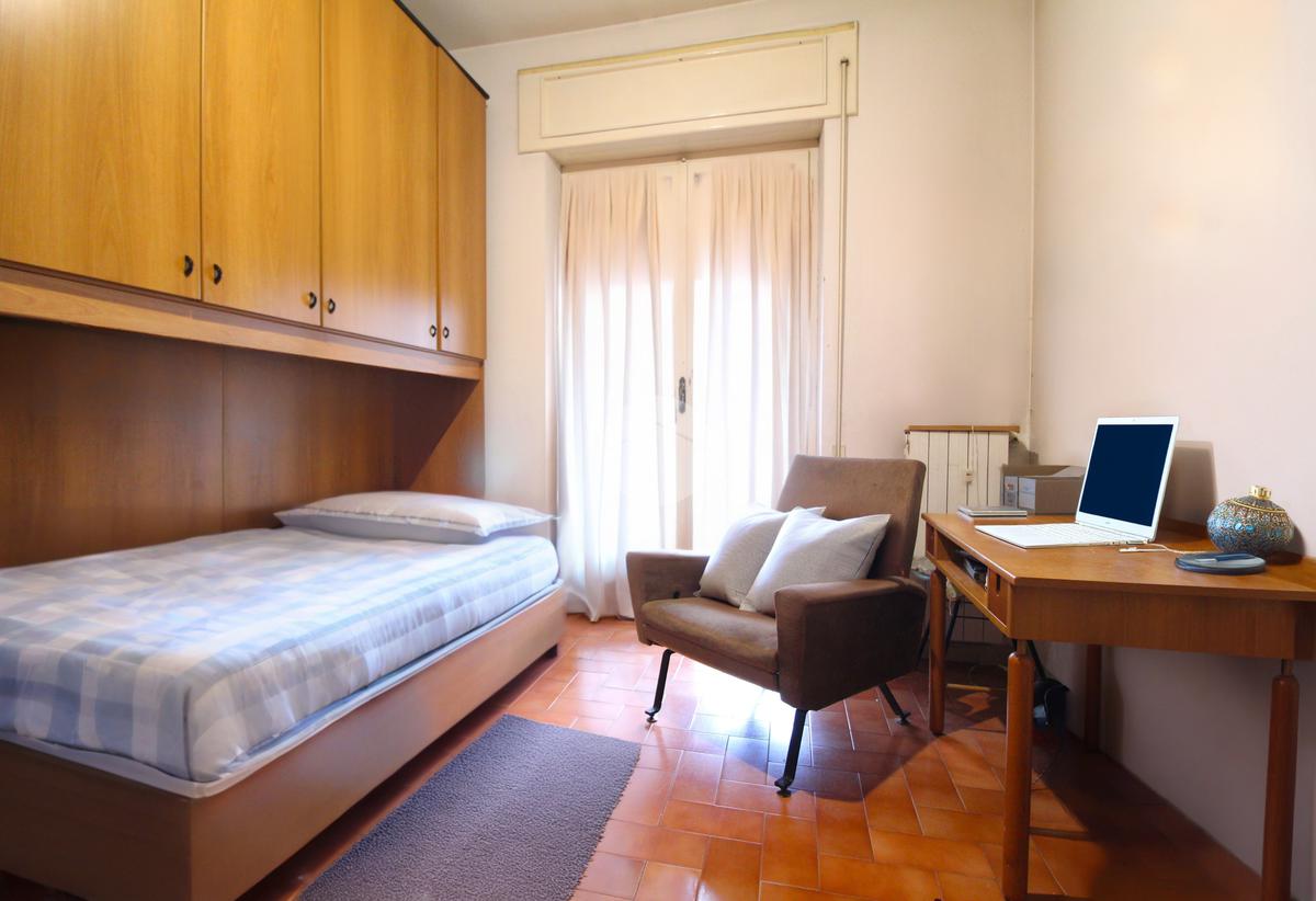Varcando la soglia, un corridoio ampio accompagna verso gli ambienti principali della casa. La grande sala, illuminata dal sole del pomeriggio grazie all’esposizione sud-ovest, si apre sul terrazzo: uno spazio all’aperto dove iniziare la giornata con un caffè, accogliere gli amici o semplicemente lasciarsi scaldare dalla luce naturale. Accanto, la cucina abitabile è un ambiente vivo, ideale per chi ama cucinare e condividere, arricchito da un balcone che regala respiro e praticità.