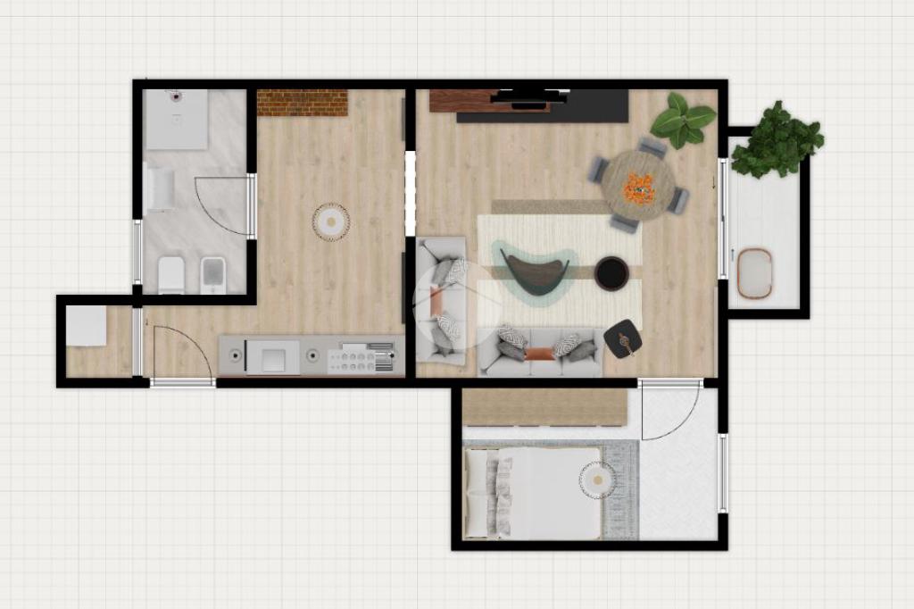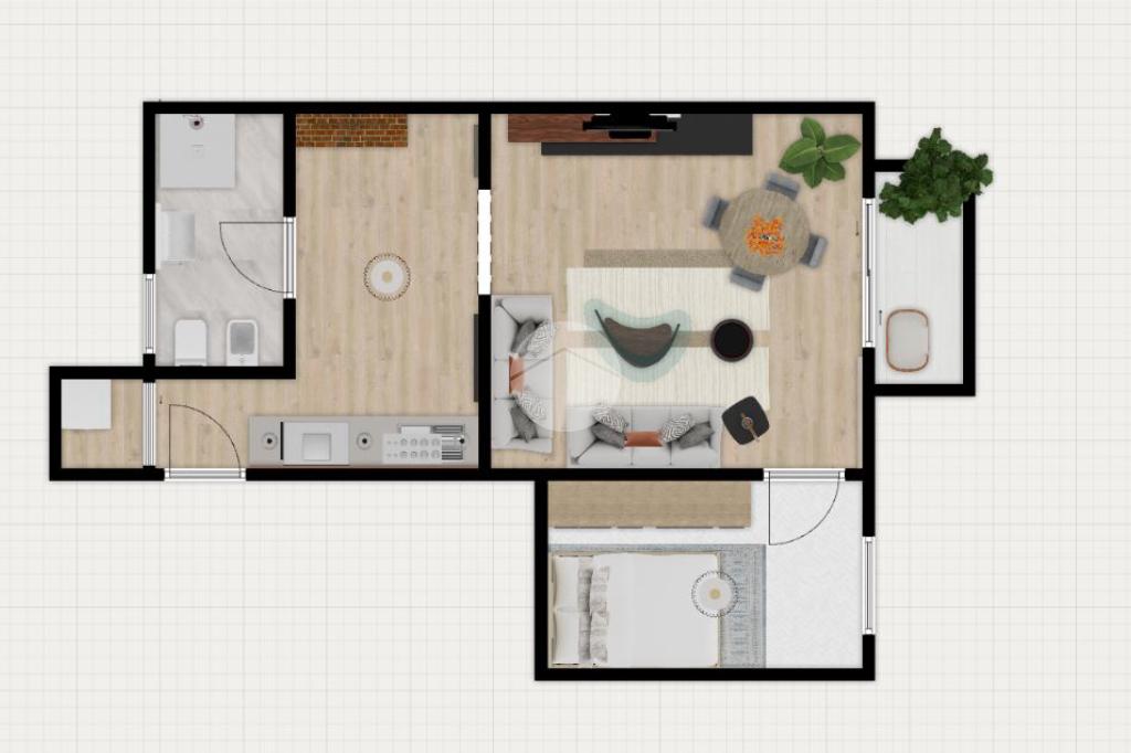 Il soggiorno, separato e servito da un balcone, offre spazi accoglienti. La zona notte presenta una camera matrimoniale. Pur richiedendo lavori di ristrutturazione per renderlo più moderno e appetibile per l'affitto, l'attuale disposizione è funzionale.