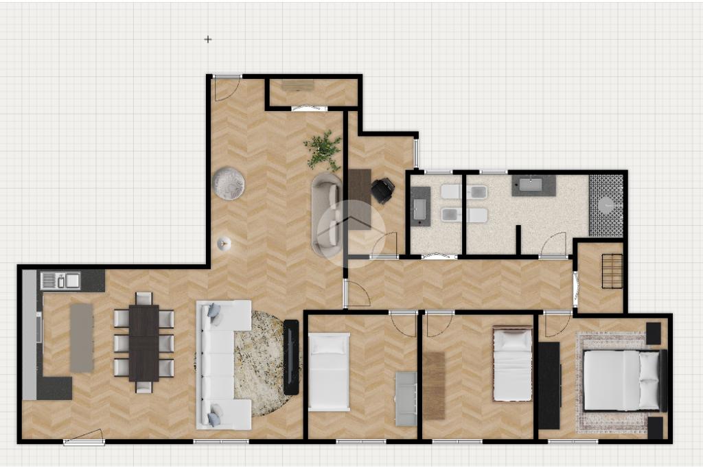 La zona notte ospita tre camere da letto spaziose, perfette per famiglie o per chi necessita di uno studio o di una stanza per gli ospiti. I due bagni, entrambi curati nei dettagli, includono uno con una doccia particolarmente ampia, pensata per offrire un’esperienza di comfort quotidiano. Completano la proprietà due comodi ripostigli e una pratica lavanderia separata, elementi sempre più richiesti e fondamentali nella gestione della casa.