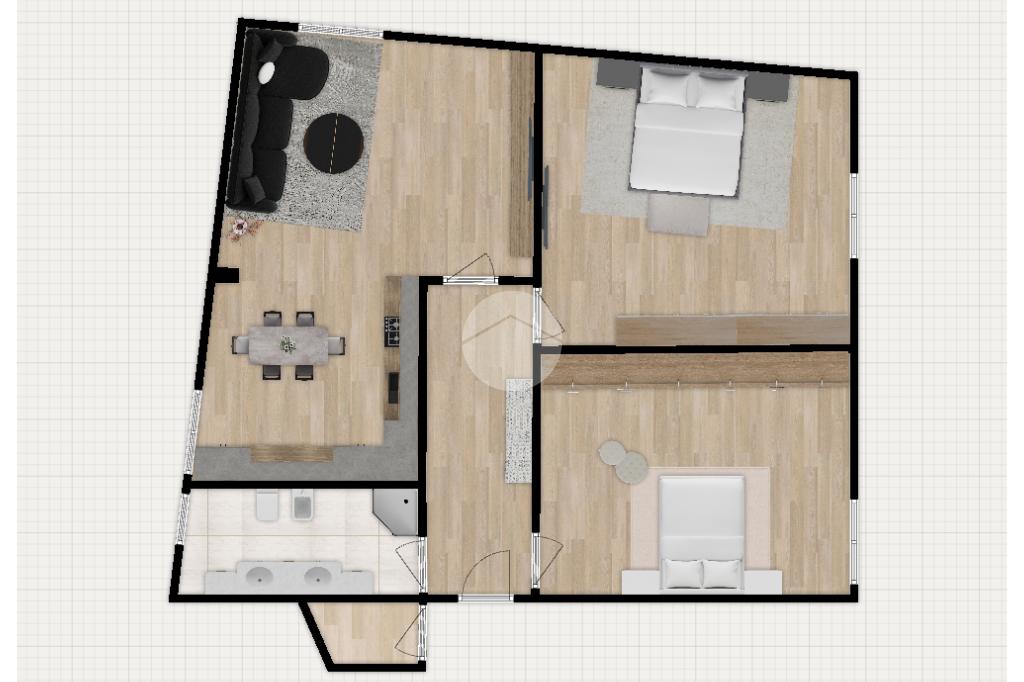 La zona notte è composta da due camere da letto, entrambe ben proporzionate e facilmente arredabili, ideali sia per una famiglia che per chi necessita di uno studio o una stanza aggiuntiva. Il bagno, finestrato, rappresenta un valore aggiunto importante, garantendo luce naturale e un’ottima ventilazione.