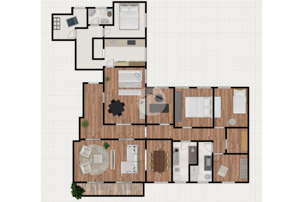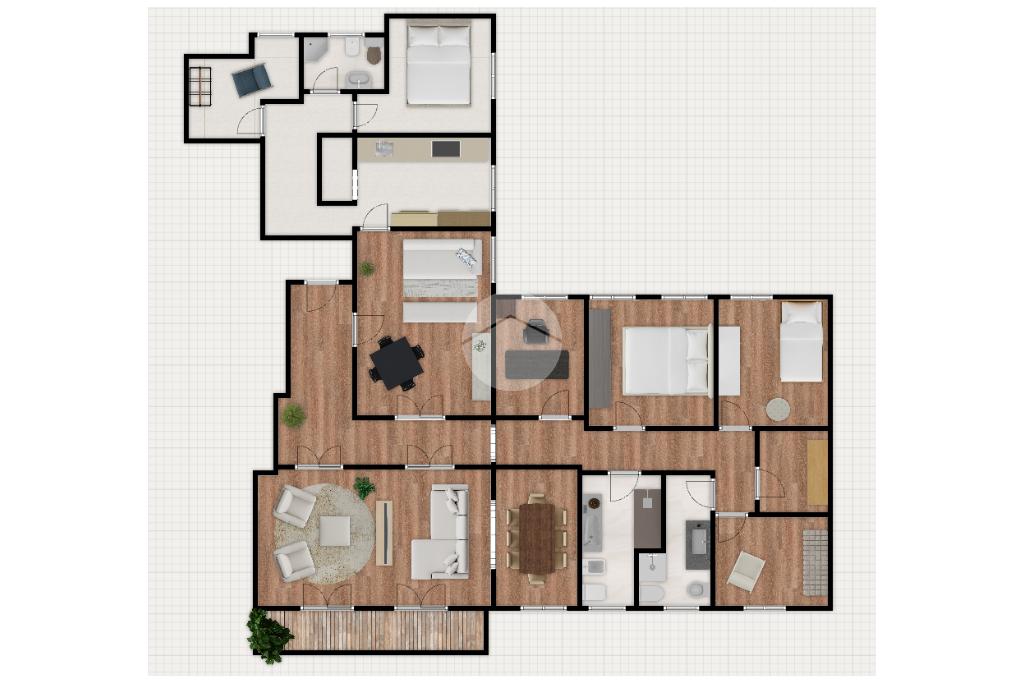 La zona notte accoglie sei stanze, tutte personalizzabili: ambienti che possono diventare camere eleganti, studi riservati o spazi dedicati alle proprie passioni. I tre servizi, tutti finestrati, garantiscono comfort e praticità nella vita quotidiana, assicurando luce naturale e una gestione ottimale degli spazi.