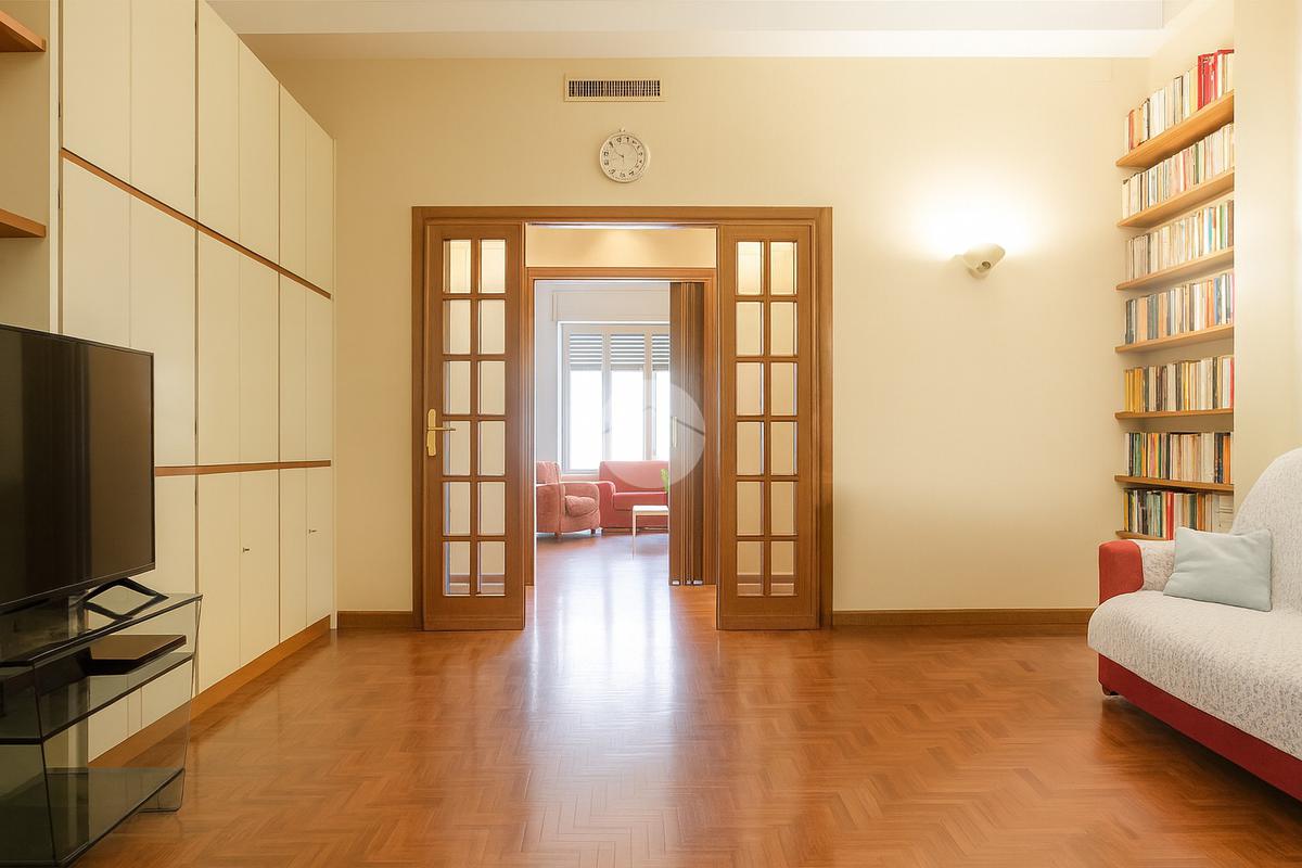 La zona giorno si sviluppa in due ampi soggiorni, ambienti luminosi e accoglienti che offrono la possibilità di essere reinterpretati in chiave contemporanea, creando spazi conviviali e funzionali. La predisposizione per una seconda cucina amplia ulteriormente le potenzialità dell’appartamento, rendendolo estremamente flessibile.