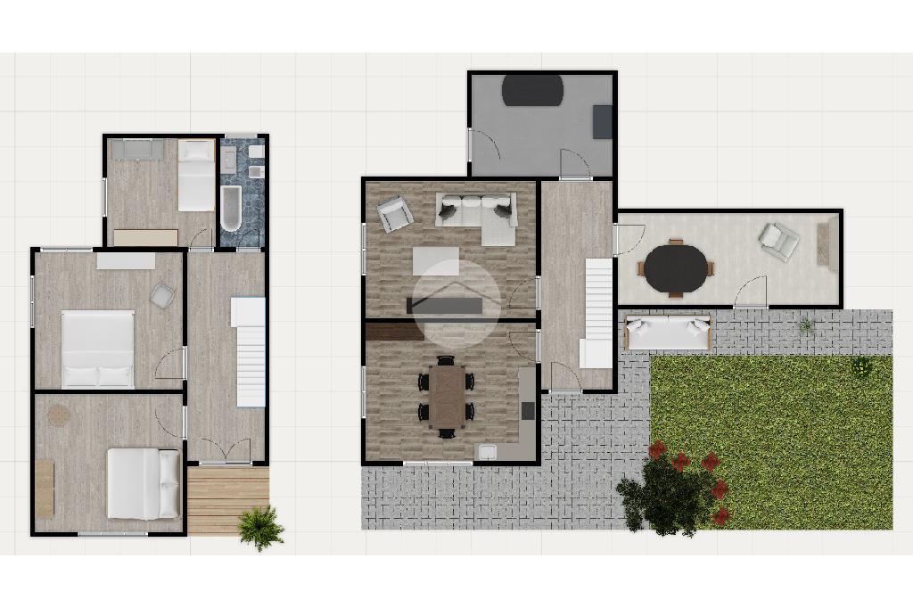 Al piano terra si trova una zona giorno accogliente e luminosa, composta da cucina abitabile, soggiorno e una taverna con camino, perfetta per serate in famiglia o con amici.